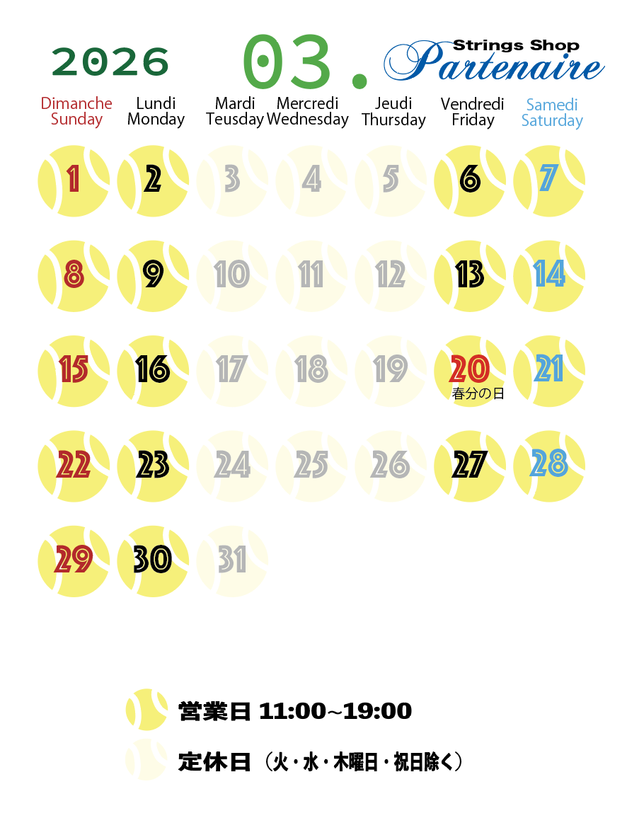 こんにちはパルトネールです 今日も花粉がいっぱい飛んでいますね~ やれやれです 今日も11時から19時まで営業いたします よろしくお願い致します ストリングショップ パルトネール Post Views: 0 入間市 狭山市 所沢市 飯能市 川越市 青梅市 瑞穂町 テニス ガット張り ソフトテニスShare this postFacebookTwitterPinterestGoogle+